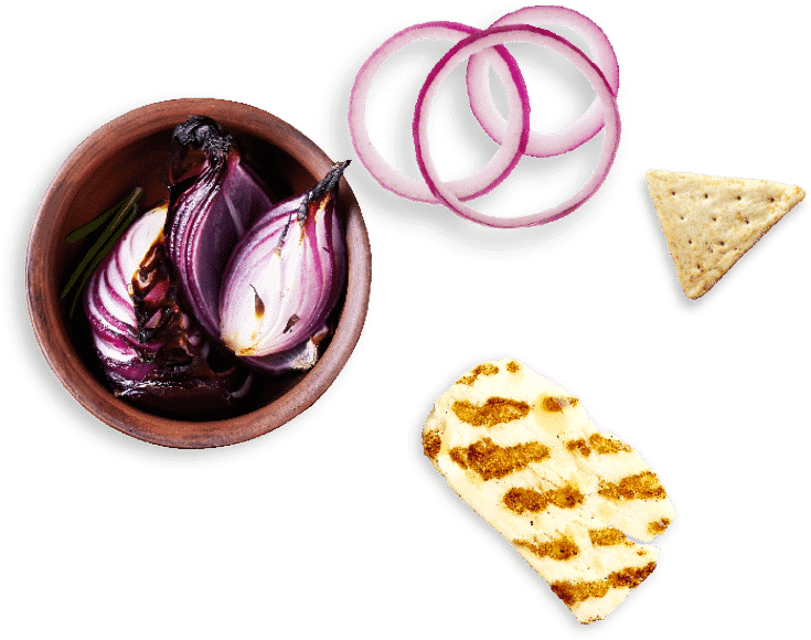 Halloumi Cheese from Pasteurised Cow, Goat and Sheep Milk (60%), Rice Flour, Starch, Caramelised Onion (1.4%), Sea Salt,